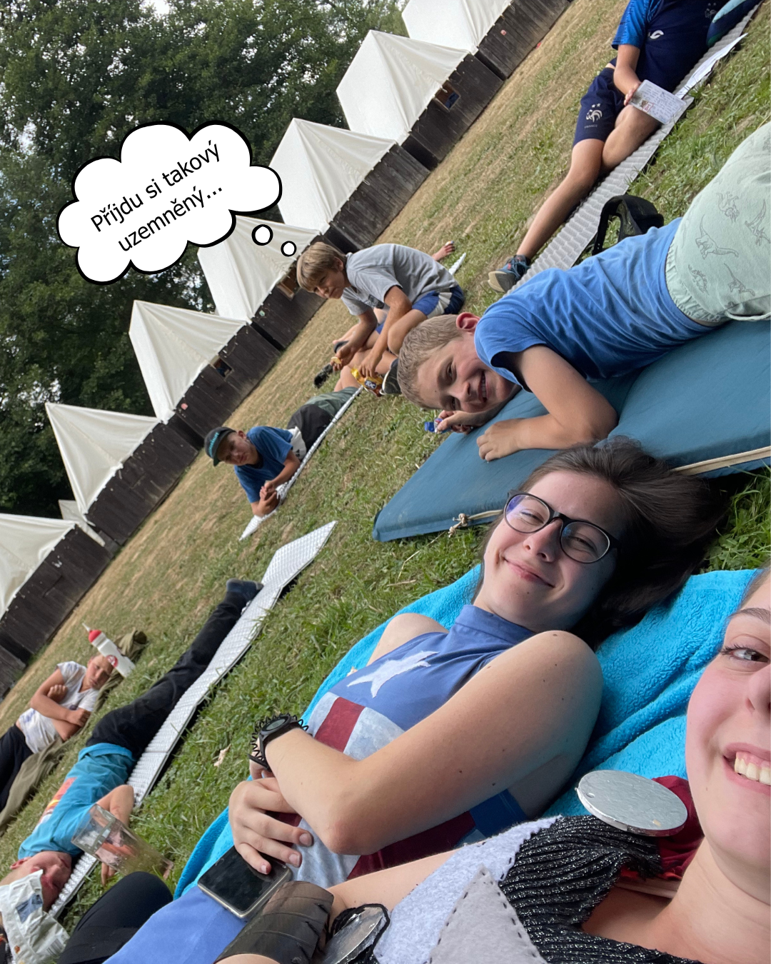 Na táborech pro nejmenší (i pro ty už trošku větší) vždy při balení na konci tábora asistujeme nejen se sháněním poztrácených věcí, ale 90 % času trávíme balením nafukovacích karimatek. Můžeme hrdě říct, že jsme v tom už skoro profesionálové a občas závodíme, kdo jich zabalí víc a rychleji. Tak se rozhodně nemusíte bát, že by nás to otravovalo.